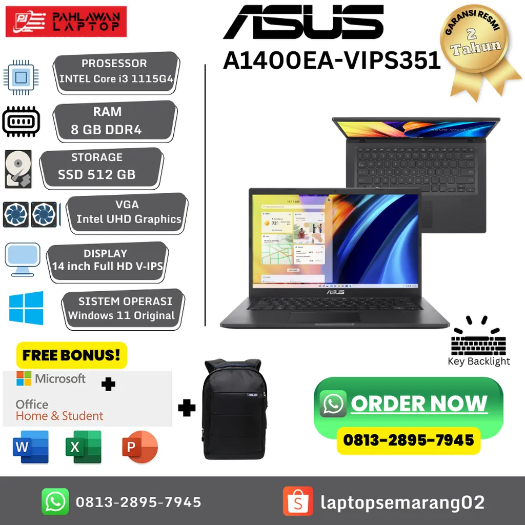 BARU!!! ASUS A1400EA-VIPS351 INTEL Core i3 1115G4 RAM 8GB SSD 512GB