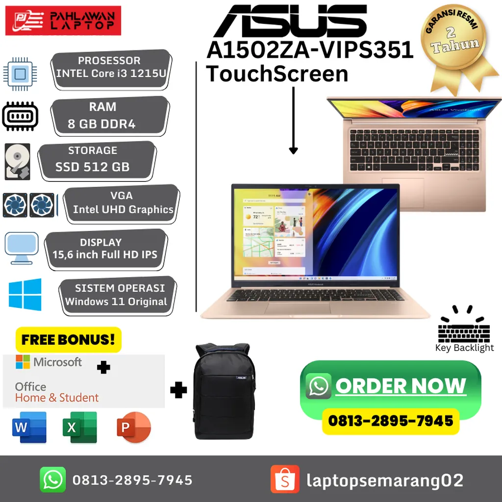BARU!!! ASUS A1502ZA-VIPS351 INTEL Core i3 1215U RAM 8GB SSD 512GB