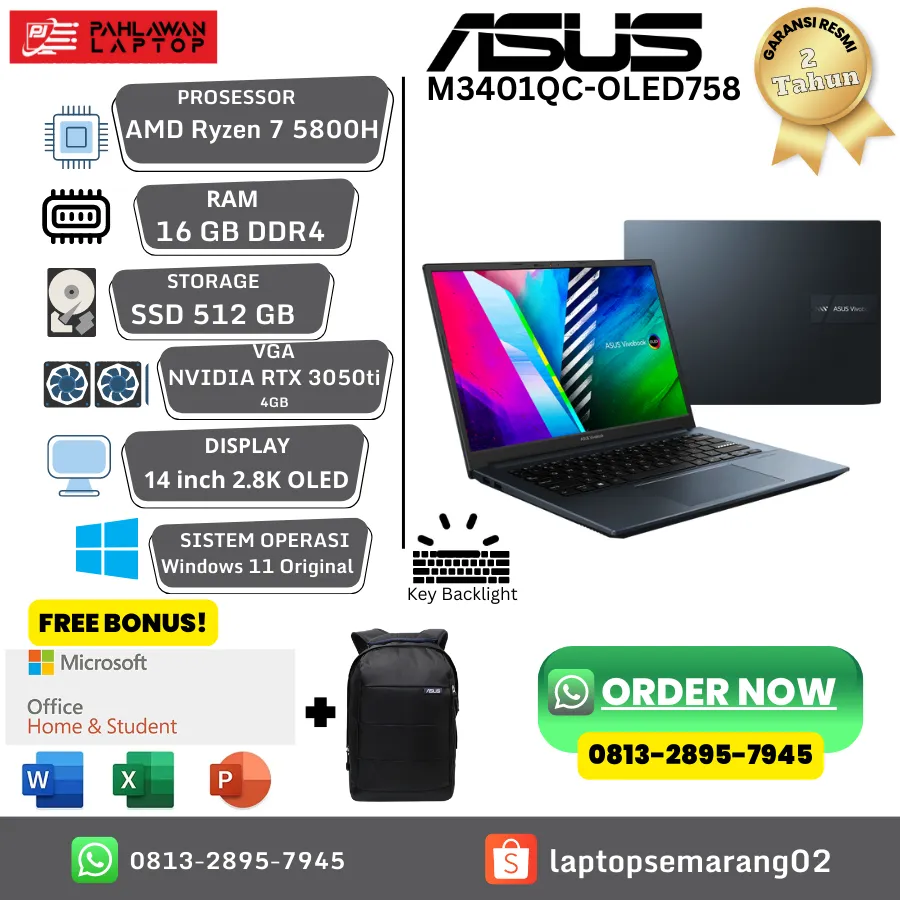 BARU!!! Laptop ASUS M3401QC-OLED758 AMD Ryzen 7 5800 NVIDIA RTX 3050ti