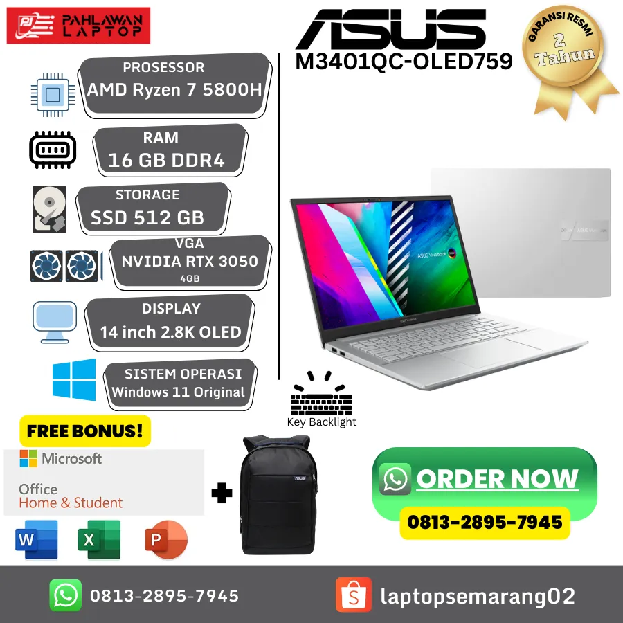 BARU!!! Laptop ASUS M3401QC-OLED759 AMD Ryzen 7 5800 NVIDIA RTX 3050