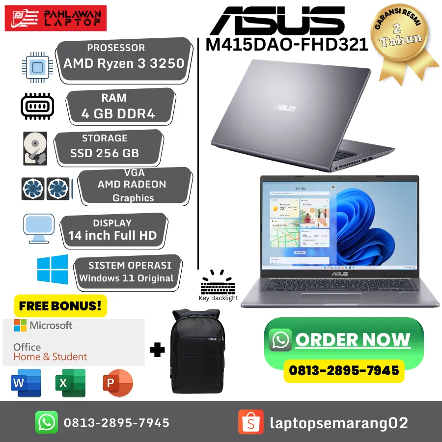 BARU!!! Laptop ASUS M415DAO-FHD321 AMD Ryzen 3 3250 RAM 4GB SSD 256GB