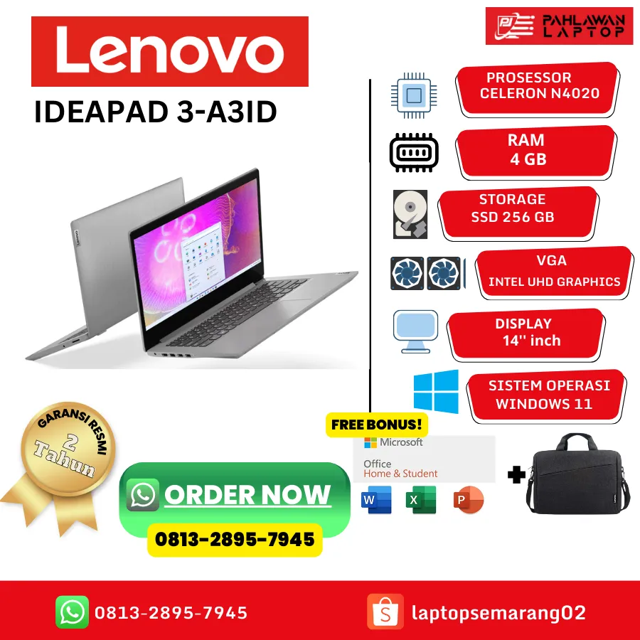 Laptop LENOVO IdeaPad 3-A3ID Celeron N4020 RAM 4GB SSD 256GB