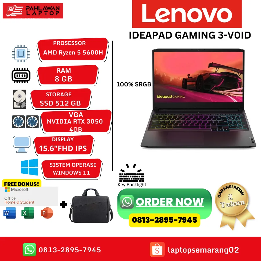 Laptop LENOVO IdeaPad Gaming 3-VOID Ryzen 5 5600H NVIDIA RTX 3050 RGB