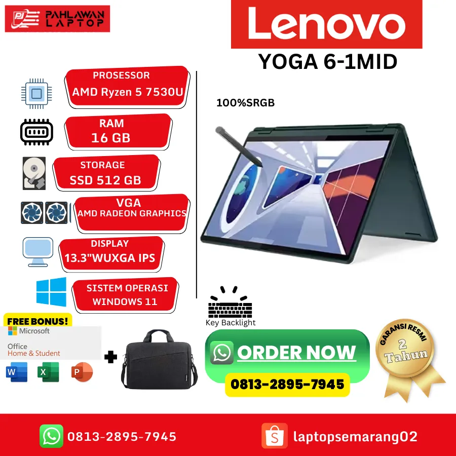 Laptop LENOVO Yoga 6-1MID AMD Ryzen 5-7530U RAM 16 GB SSD 512 GB